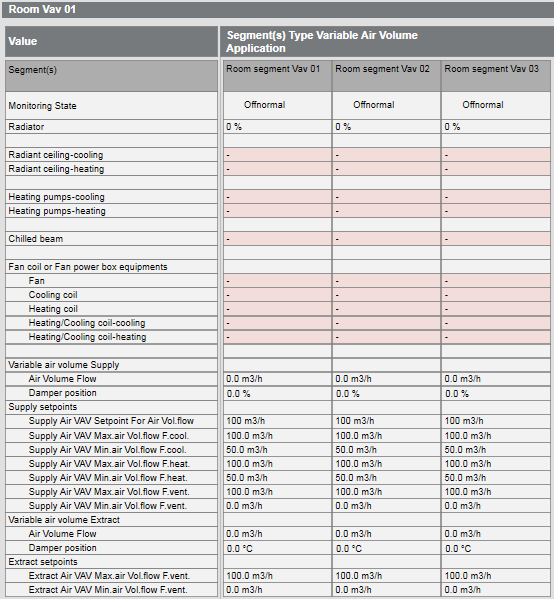 Example with three Variable Air Volume segments: