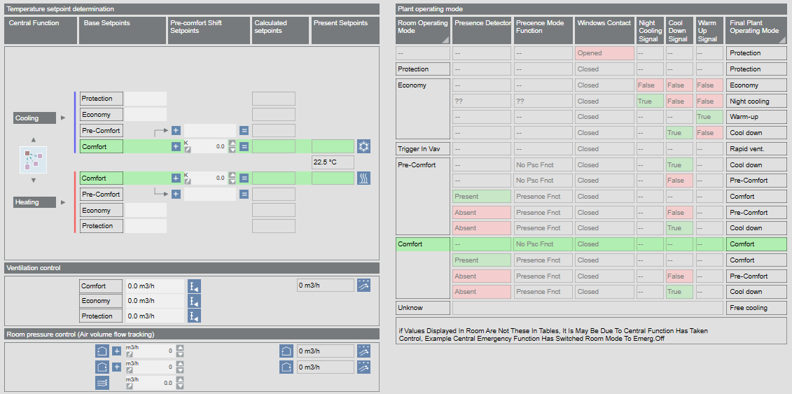 - Plant operating mode and Temperature setpoint determination are displayed.
