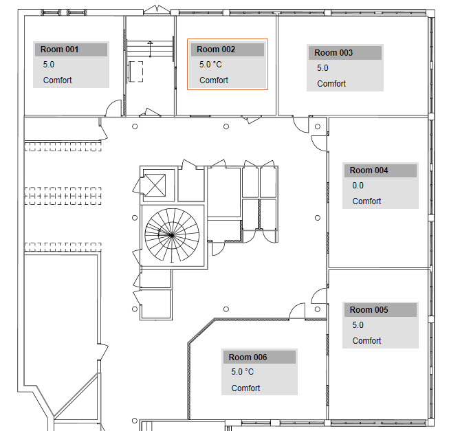 - The room graphic opens and displays the most important values in the Contextual pane.