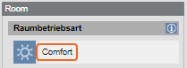 - The Operation tab displays properties Room operating mode and Comfort button.