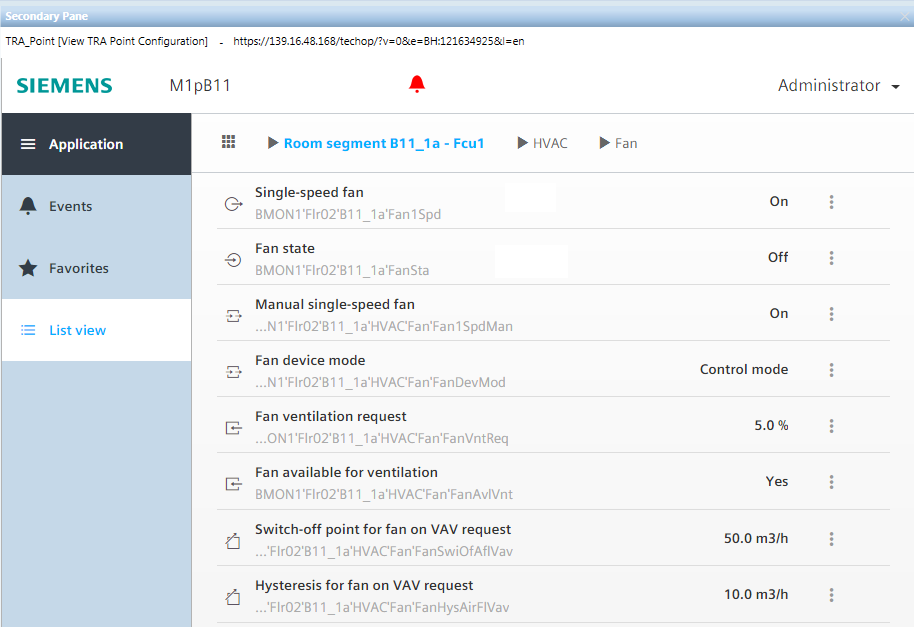 1. Select Logical > [Hierarchy name] > [Room name] > [Room segment]> [HVAC] > Fan.