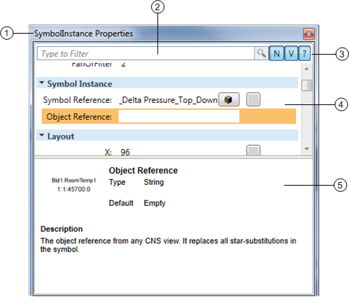 The Properties view displays all the properties of the active canvas or a selected graphic element on the canvas. The title bar text of the Properties view changes to reflect the name of the selected element, and the associated properties are displayed by category in the view. Properties can also be filtered to display by property name or by a value.