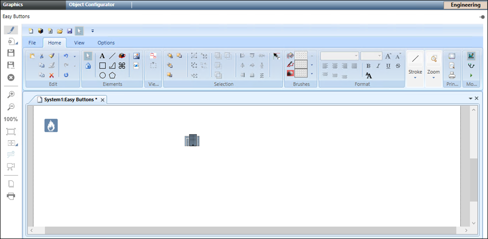 In Engineering mode, the Easy Buttons tab displays when you select: