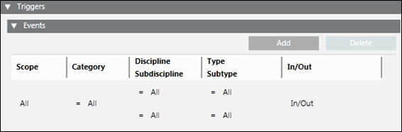 • Triggers: Allows you to access configure additional conditions to initiate the incident. Expand to view the Events expander where you can configure event conditions for the step.