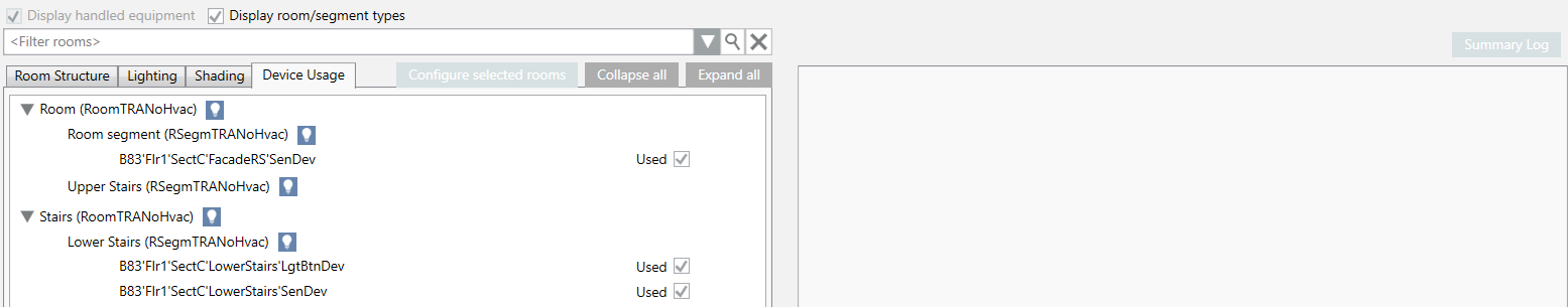 Displays all rooms taken over in the room information list by the System Browser. To improve the overview, drag only the rooms for editing to this window.