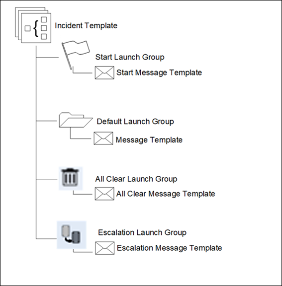 • Start Launch Groups: contain notification templates that are launched when an incident is initiated.
