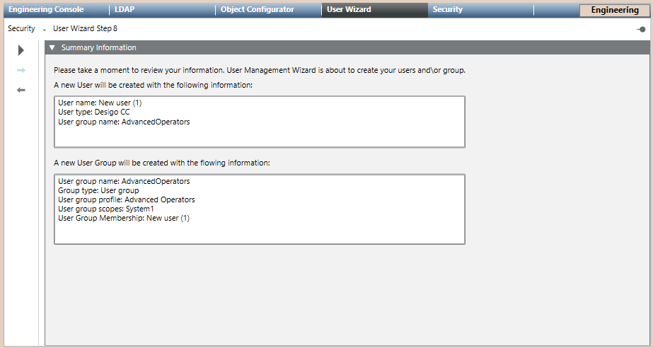 You are in the User Management Wizard step 8 – Summary Information.