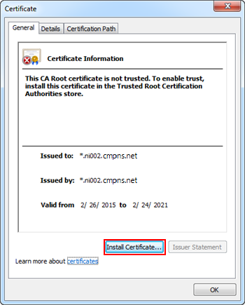 - If the certificate you used while creating a website is a host certificate, then you must install the root certificate of the host in the Trusted Root Certification Authorities store.
