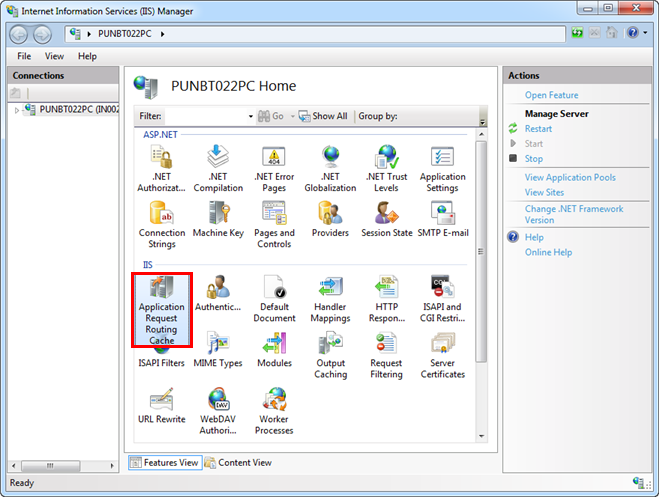 - When ARR is installed, the IIS Manager application in Windows will show the Application Request Routing Cache icon.