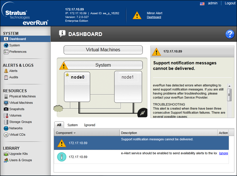 Client does not lose the remote desktop connection to the protected Virtual Machine and all the Notification features are still accessible. The star icon is shifted to node1 making node1 as the primary physical machine.