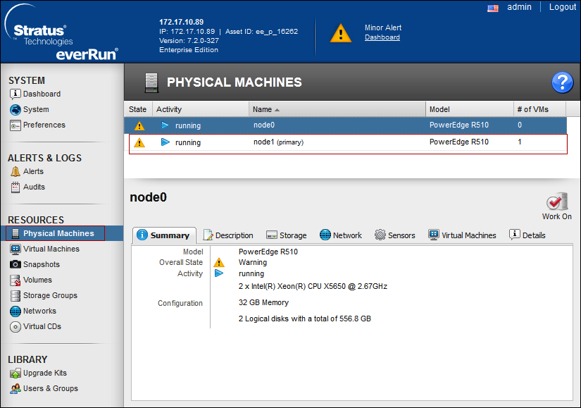 Select Physical Machines to verify that node1 is the primary physical machine.