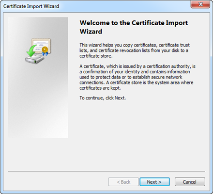 The Certificate Import Wizard dialog box displays.