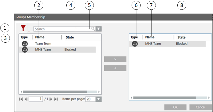 The Group Membership dialog box allows you to associate a recipient user with the configured recipient groups.
