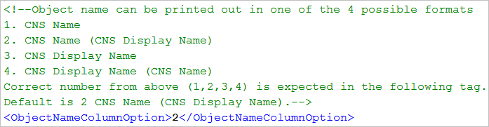 In the ObjectPathColumnOption example, the object source path prints along with the Common Naming System (CNS) display name. If you enter 1 as the value, the object source path prints along with the CNS name.