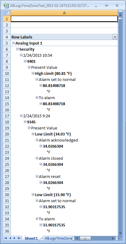 For example, if you have a report definition with an All Logs table, the PivotTable or chart in the Excel document that is set as a template